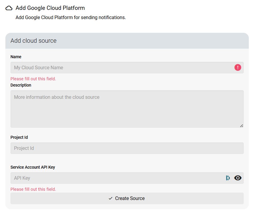 Click Create Source to enable the integration.